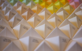 For my information design, I wanted to showcase all the text weight papers from Kelly Paper. The idea was to create origami to show all papers from different angles and use light reflection to show different colors and texture. All the paper information are printed on the left side.