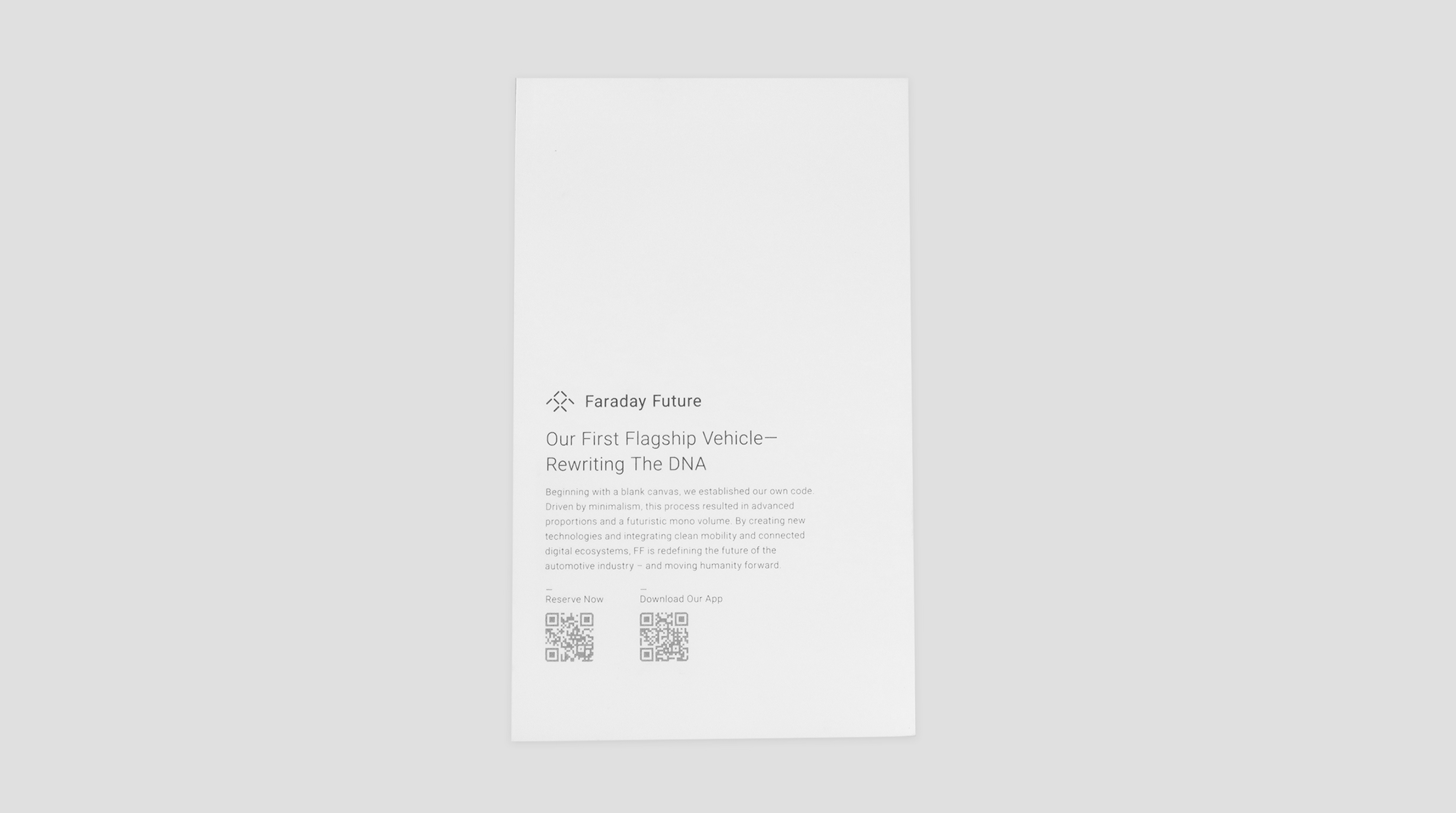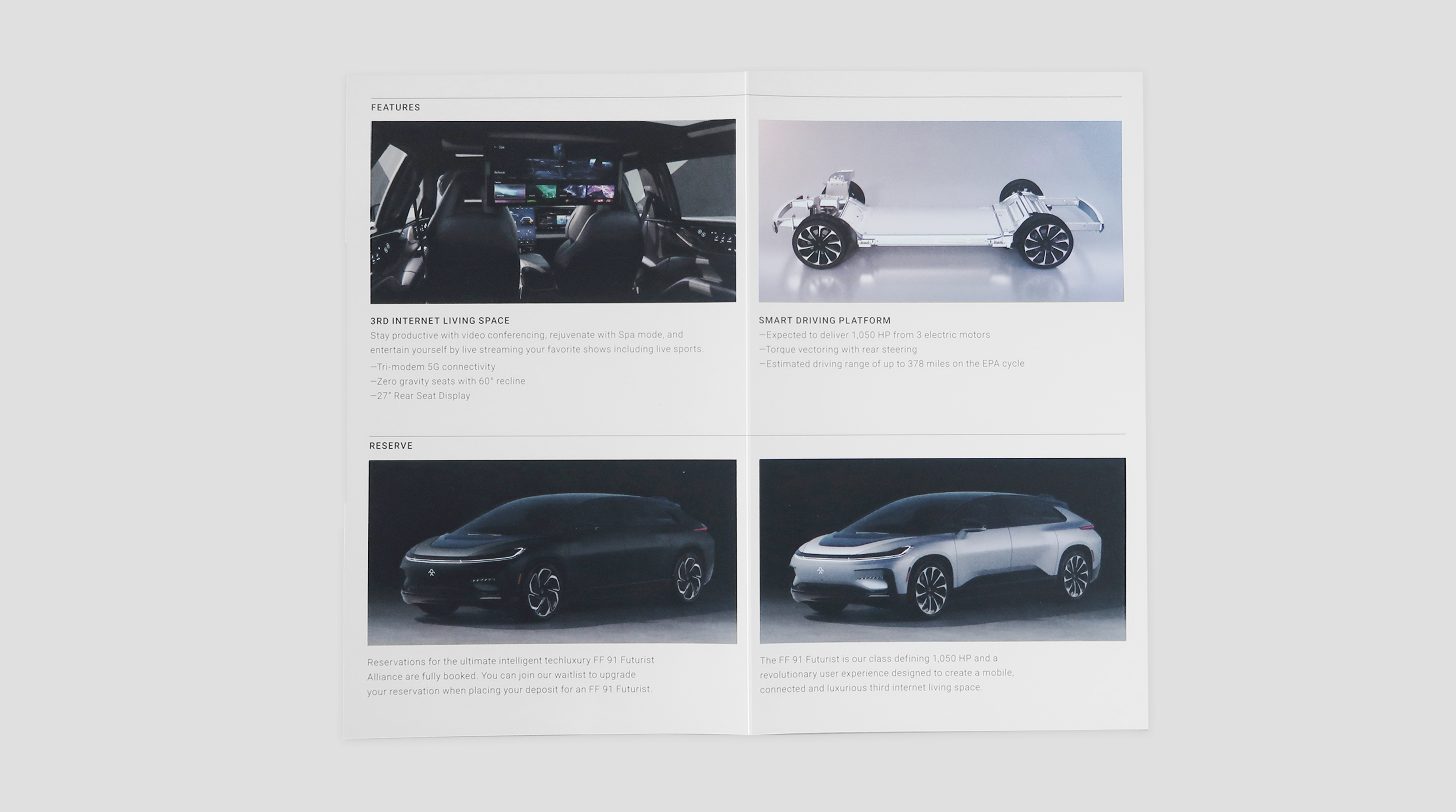 Marketing brochure that explains about Faraday Future FF 91 features and their brand.
